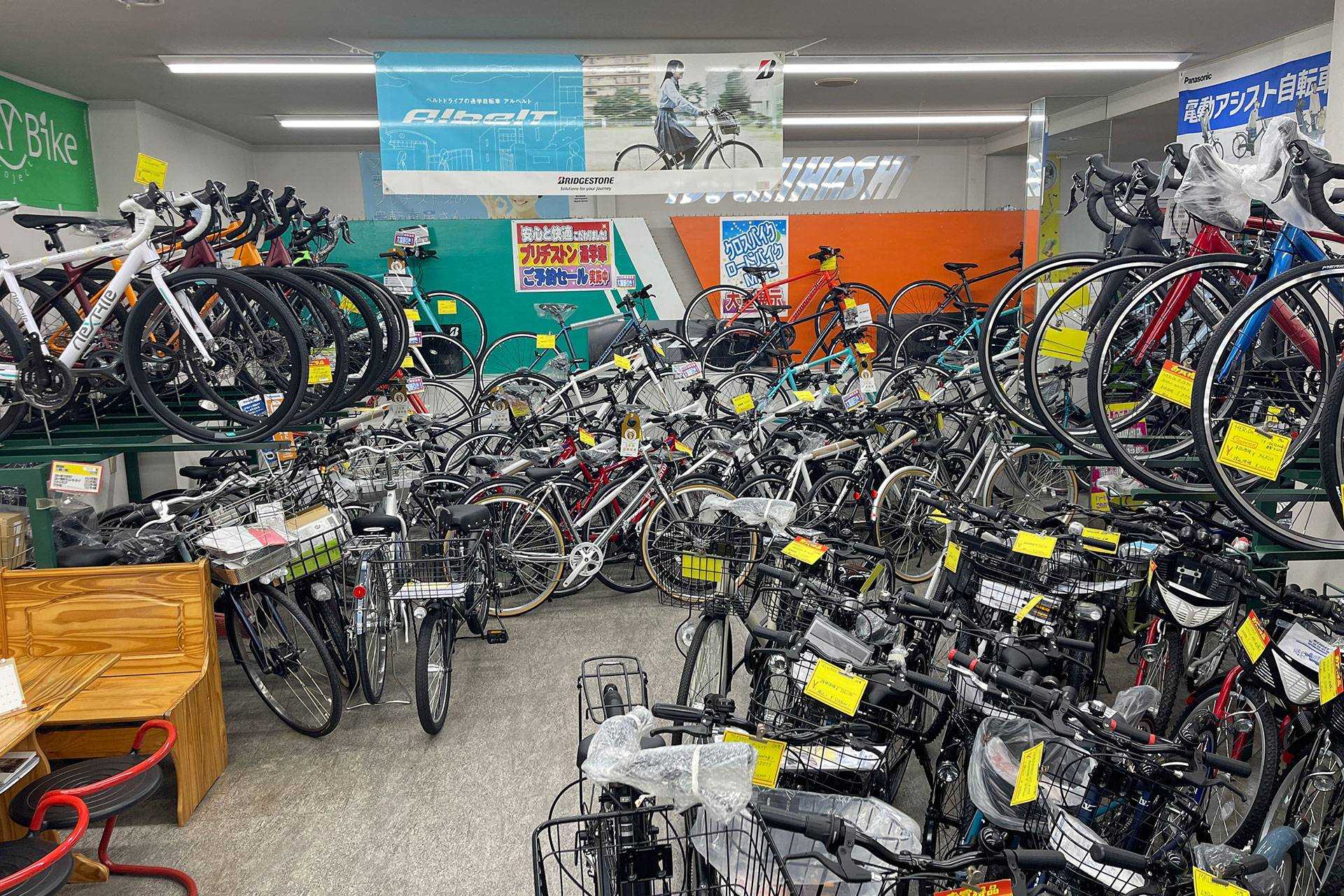 店内には常時450台以上を展示。子ども用だけでも100台を超える充実のラインナップ。